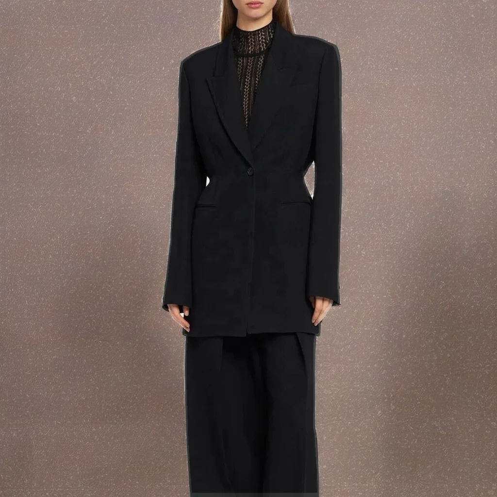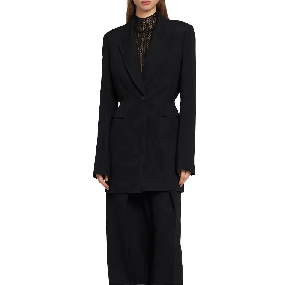 Customize New Style Single Button Elegant V-neck Breathable Midi Black Formal Professional Solid Color Long Sleeve Blazer Suit